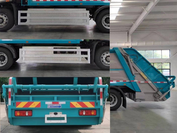 其它 | 1.該車安裝垃圾箱、液壓系統等專用裝置,主要用于垃圾的收集和轉運功能;2.僅采用4500mm軸距,隨底盤選裝駕駛室,選裝后部工作裝置,整車外形長/前懸/后伸對應關系為(mm):9150/1430/360,9120/1400/360,8990/1430/200,8960/1400/200;當整備質量為12300kg時,對應的載質量為:5570kg(2人),5505kg(3人);當整備質量為11900kg時,對應的載質量為:5970kg(2人),5905kg(3人);3.ABS型號/生產企業:J ABS/焦作博瑞克控制技術有限公司;4.儲能裝置單體種類/儲能裝置單體生產企業/儲能裝置總成的生產企業: 磷酸鐵鋰電池/寧德時代新能源科技股份有限公司/寧德時代新能源科技股份有限公司,電機的額定/峰值功率分別為:80kW/160kW;5.側防護裝置材料:鋁合金,連接方式為螺栓連接,后防護由專用裝置代替,離地面高度450mm;6.選裝限速裝置,限速:89km/h;7.安裝具有衛星定位功能的行駛記錄儀.可選裝直接供電式ETC車載裝置.選裝工作燈,該燈僅在夜間工作時起照明作用,行駛過程中不可點亮. | ||