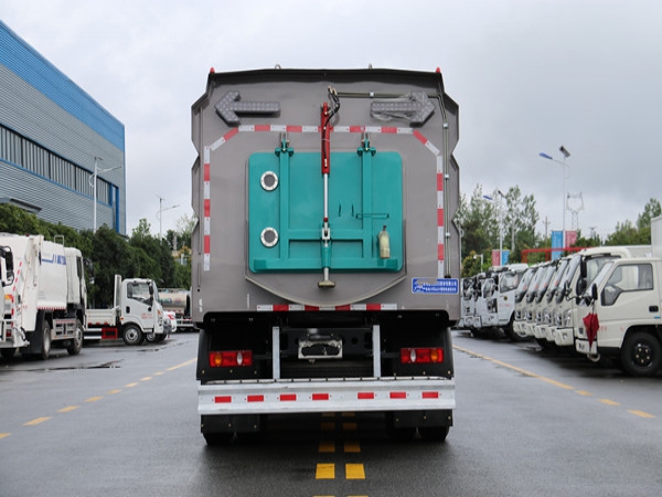清水箱充分利用了車載空間,容積大,可達(dá) 7.5m3。垃圾箱采用單層 304 不銹鋼結(jié)構(gòu),傾翻卸料,帶高壓自潔裝置。自潔裝置可在垃圾箱卸料時(shí)幫助卸料,清洗垃圾箱內(nèi)部。